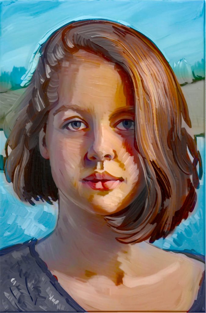Using 75 makes it closer to the painting, but still gaining some details from the input. This can be combined with tool ‘Original colors’, to make it closer to the input: